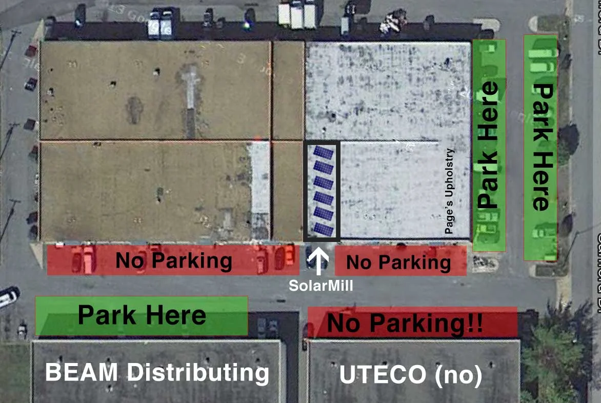 Our location is easy to find.  Just search google maps for "SolarMill" or if you don't have a smart phone: